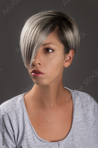 Short Hair Style Hair Cut Grey Silver Platinum Hair Color Stock Photo Adobe Stock